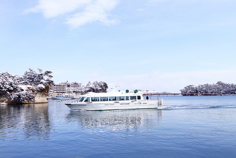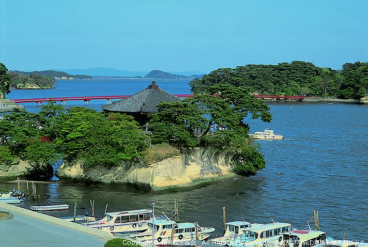 【松島灣遊船】松島是散佈在松島灣一帶260多個大小島嶼所構成島嶼群的總稱。灰白色的岩石上挺立著茂密的松樹,在此可以觀賞到日本極具代表性的海灣風貌,並因季節而產生各種美麗變化。日本著名俳句大師松尾芭蕉就曾讚歎松島為「扶桑第一絕景,可與洞庭、西湖媲美」。松島也與宮津市的『天橋立』、廣島縣的『宮島』,並稱為「日本三景」。 遊覽松島最好的方式就是搭乘遊覽船,在藍天白雲之下能輕鬆飽覽諸多小島的秀美風光,沿途還可以看到成群生機勃勃的海鷗。而分別位於松島灣東、南、西、北四個方位的大高森、多聞山、扇谷和富山,則被合稱為「松島四大觀」,從這四處可以眺望到不同神態的松島風光。