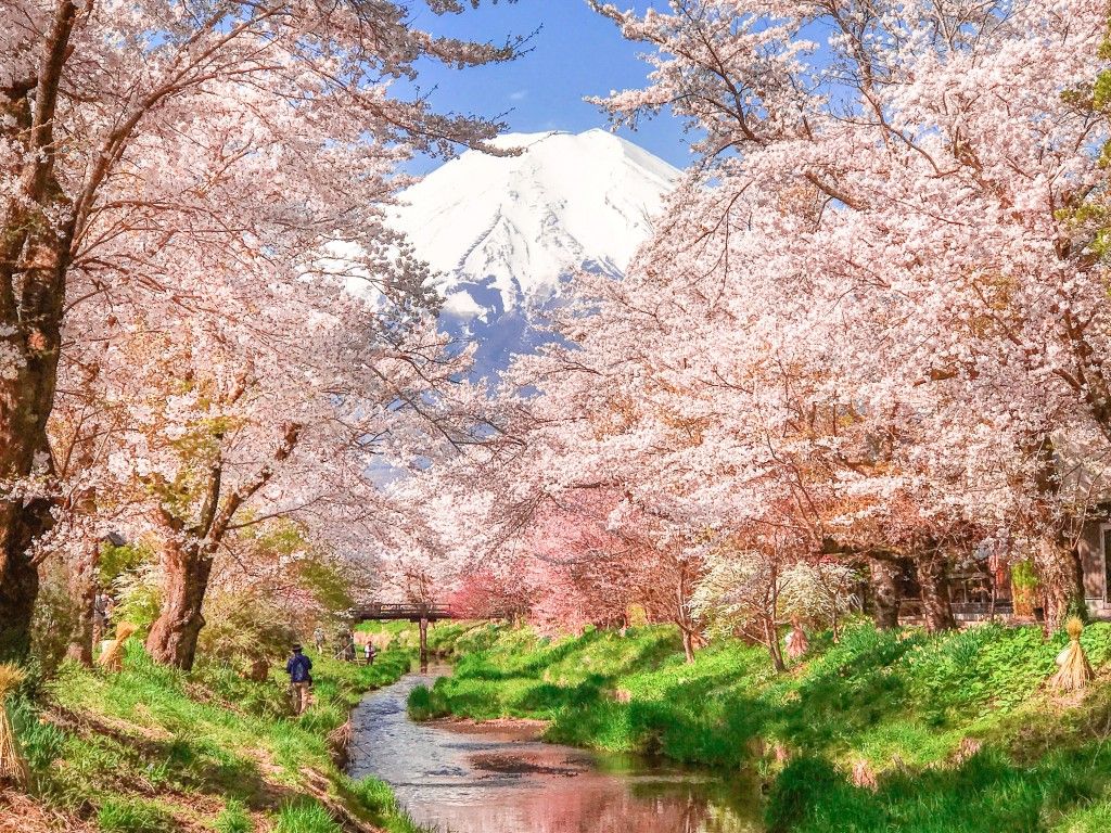 新倉山淺間公園是觀賞富士山的絕佳地點,春季櫻花盛開時,五重塔、櫻花與富士山構成的景色被譽為日本最美的風景之一。