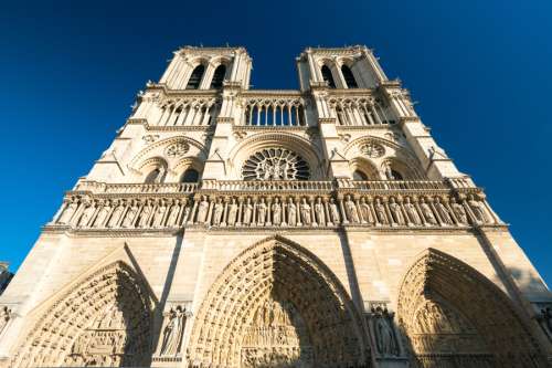 塞納河西堤島上的典型的歌德式建築,最有代表性的歷史古蹟、觀光與宗教的勝地,而在門口外的聖母院廣場中,有個原點紀念物,是法國丈量全國各地里程時所使用的起測點。雨果著名的著作《鐘樓怪人》,也是以巴黎聖母院為背景創作。